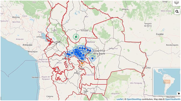 Localisation des blocages, image du journal Los Tiempos.