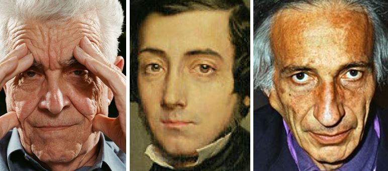 Mais cet environnement culturel, jouant le rôle de tiers arbitrant la confrontation des doubles, s’entend dans une dimension plus vaste encore, littéralement historique, dont Tocqueville nous a révélé les arcanes. Il a profondément marqué la pensée de René Girard : « [Tocqueville] explique grosso modo qu’au moment de la Révolution des milliers de jeunes gens ont pensé qu’en abattant le roi, ils abattaient l’obstacle qui les empêchait d’ « être » celui qui avait pris leur place. Ils croyaient alors qu’ils allaient tous « être », et ils ne se rendaient pas compte que cet obstacle unique, lointain, relativement anodin, serait remplacé par tous les petits obstacles que chacun serait dorénavant pour tous les autres. C’est donc le passage du courtisan heureux, qui rit et s’amuse –parce que pour Stendhal, l’Ancien Régime, c’est le rire –, à la vanité triste. La Révolution, c’est la naissance du monde balzacien, où chacun est le rival de l’autre. Il y a là une découverte profonde et qui a nourri tout mon travail [4]. »